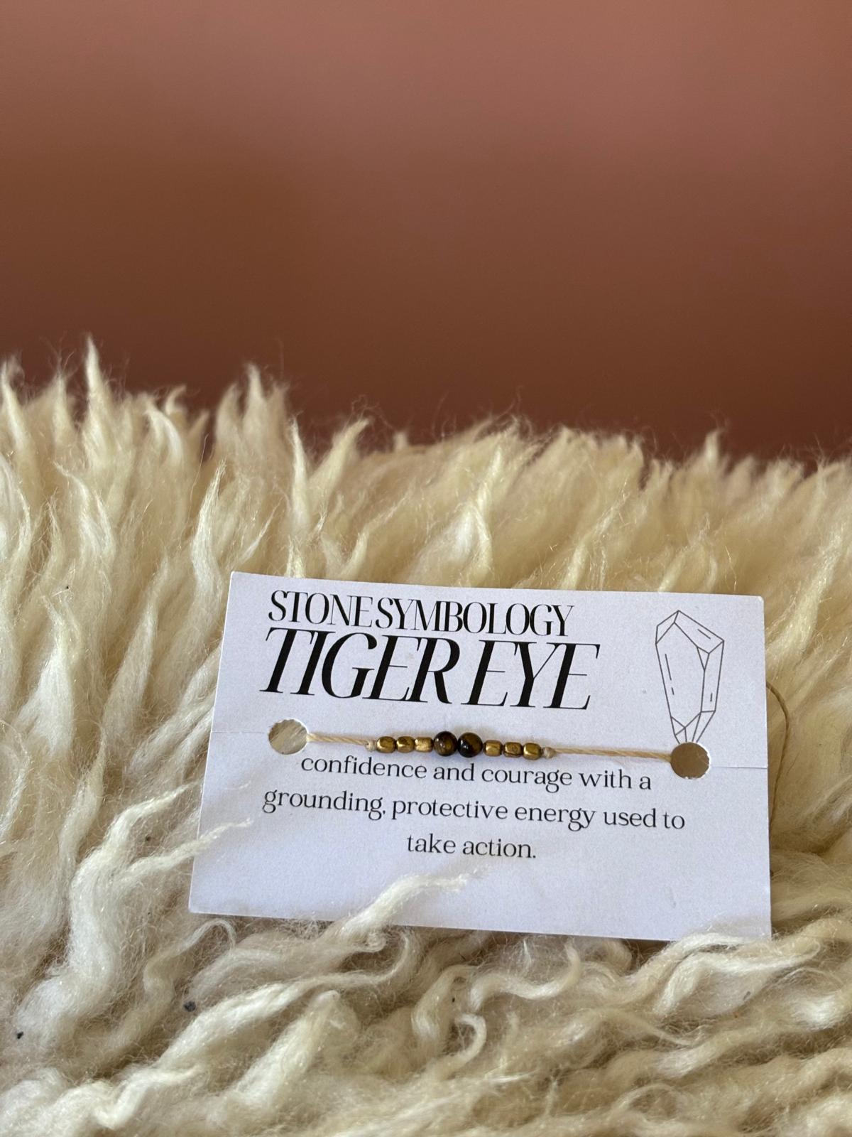 Deze edelsteen armbandjes kunnen iemand net de intentie geven die nodig is. De armbandjes zijn gemaakt met katoen touw (gewaxt), edelsteen stenen zoals tijgeroog, rozenkwarts, citrien, jade en obsidiaan en goudkleurige steentjes van messing.